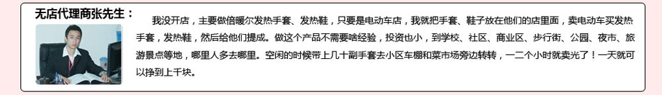 【倍暖尔】充电发热鞋、发热手套、发热衣服不仅款式时尚,供年轻消费者选择,【倍暖尔】发热马甲,足以替代传统保暖羽绒制服,完全可以实现“美丽、风度,更有温度”的需求。当然除此,时尚的发热手套、发热鞋无一不是年轻人的所爱。