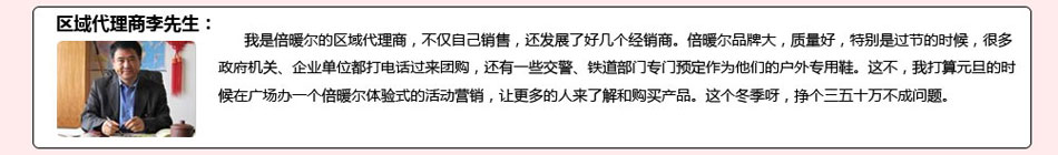 【倍暖尔】发热鞋、发热衣服、发热手套另有其独特的远红外吸湿、理疗保健功效,能够有效缓解关节酸痛、腰酸、肩背酸痛,是中老年人温暖过冬的首要选择。