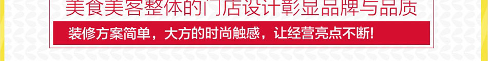 美食美客拥有完整的品牌形象包装及完善产品结构系统,充分满足各类有志之士加盟美食美客的大家庭来,我们会用诚挚的态度去帮助您尽快学会经营之道。