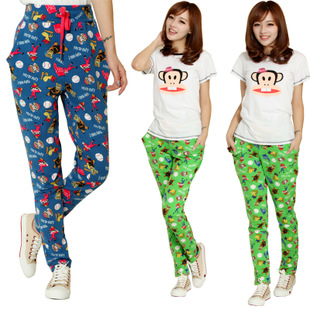 猴子印花休闲长裤宽松碎花裤哈伦裤小脚卫裤显瘦春秋大码女裤子 /