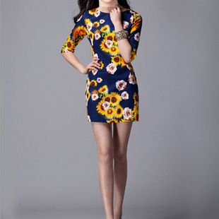 2014欧洲站秋装新款印花五分袖欧美大牌女装连衣裙女式裙子G014 /