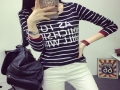 2015秋装新款女装打底衫 学生海军风条纹宽松长袖t恤女 一件代发 /