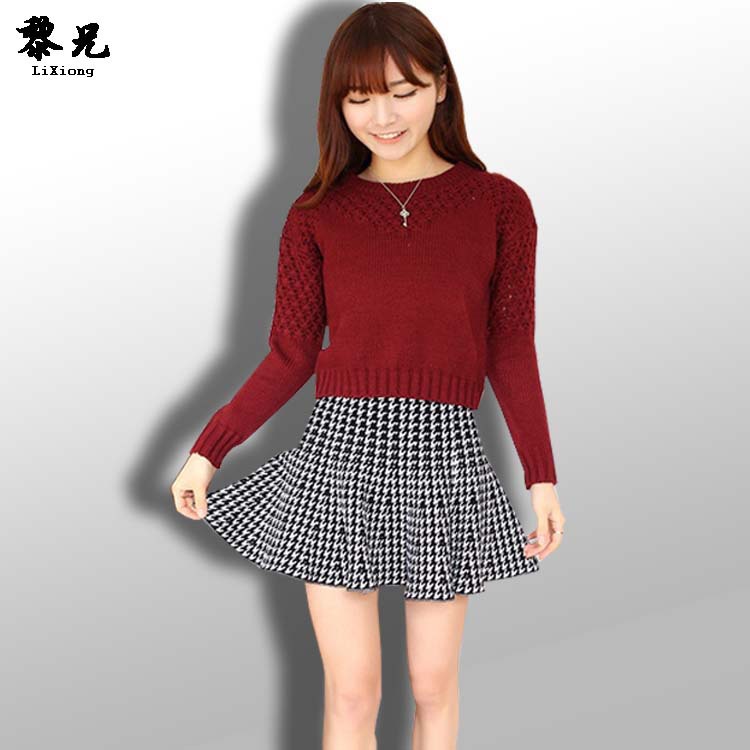 淘工厂 韩版圆领间色套头衫毛衫来样来图贴牌加工 /