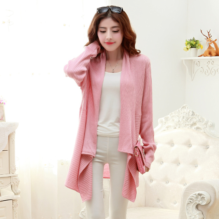 厂家直销 高端女装中长款开胸针织衫 甜美宽松型长袖针织衫女 /