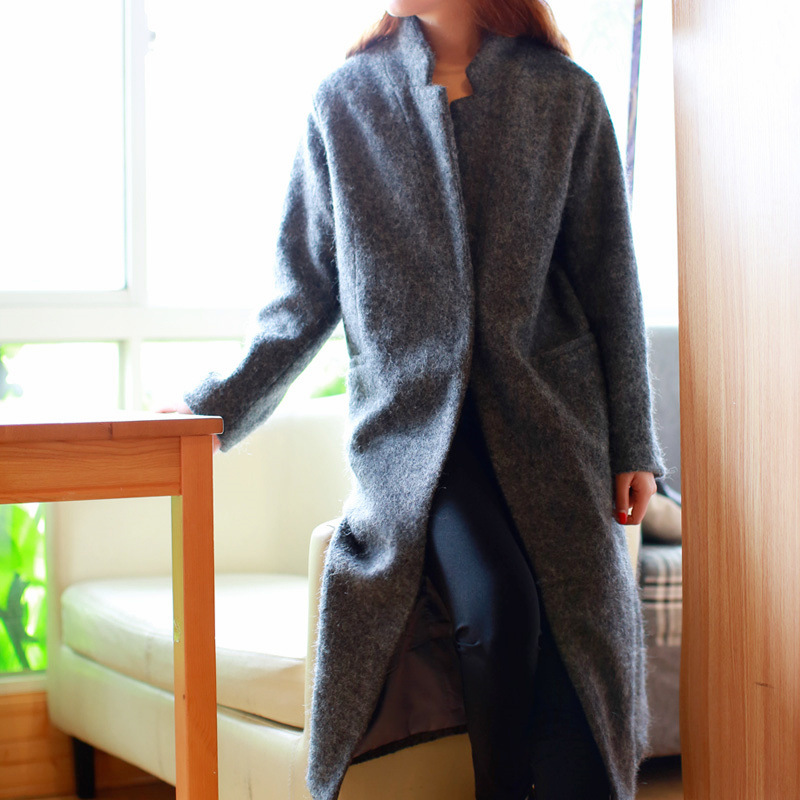 2015年冬新女装毛呢立领厚款保暖帅气暗扣长款外套大衣 /
