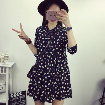 2016夏装新款宽松翻领雪纺碎花连衣裙衬衫裙内搭A字打底裙 /
