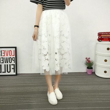 2016夏季新款镂空蕾丝半身裙中长款松紧腰气质百搭仙女裙a字裙 /