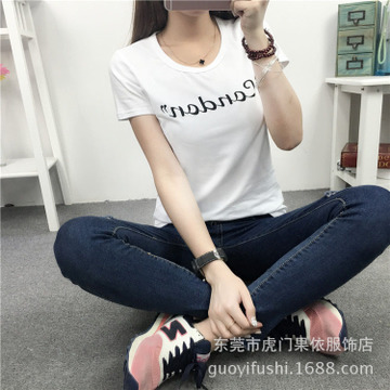 短袖印花T恤女1688女装批发特价 夏季 纯棉圆领韩版女式字母T恤 /