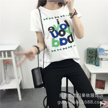 宽松中长款韩版套头短袖T恤女 字母印花上衣阿里巴巴批发特价批发 /