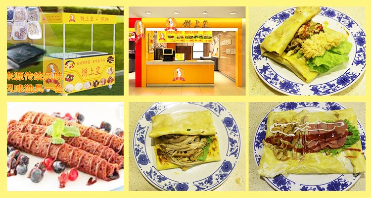 饼上皇煎饼,低调平价美味,五大系列,四季组合经营,9味煎饼,覆盖早中晚夜宵,24小时全天消费,轻投创业起步。2-5㎡档口店,堂食+外带+外卖,1-2人经营,简单易学,不需大厨,人人能干,整店输出,全程指导。