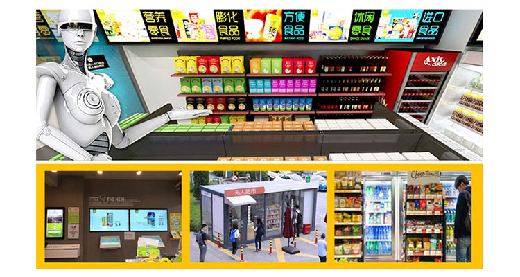 无人零售店:24小时营业,无人销售。点屏下单,手机支付,打包出货。