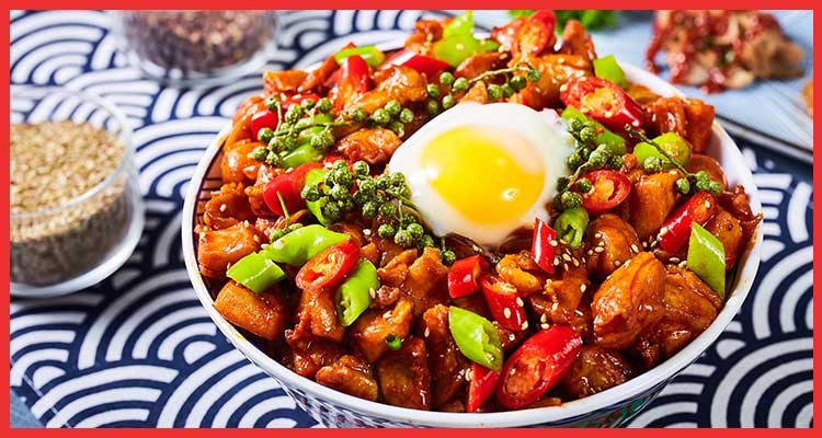烧——特制烧汁:烧好的酱汁直接浇在米饭和蔬菜肉食上,香味扑鼻口味浓郁鲜香,惹人谗涎。