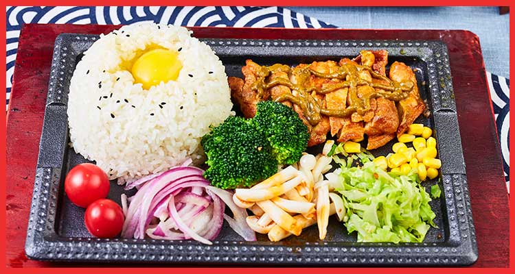 番茄鸡扒饭 蒜蓉汁牛扒饭 韩式猪扒饭